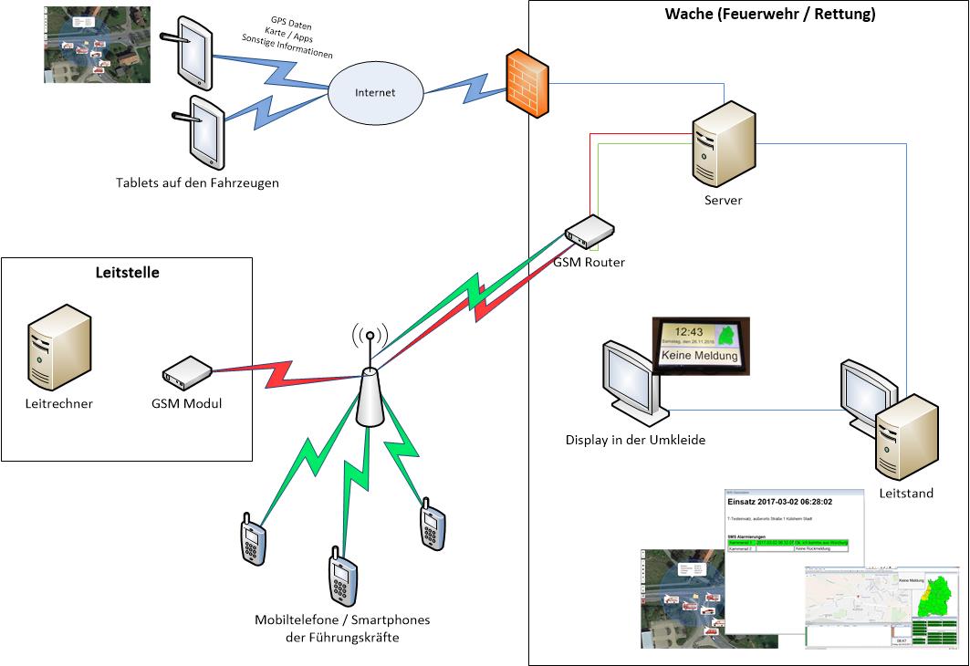 Eine Schnittstelle der SMS-Alarmdaten der Leitstelle an BOSMon ist ebenfalls realisiert.